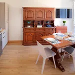 Alongside coffee/tea making facilities, guests staying in the property can enjoy a mini-kitchen complete with a fridge, an oven, and kitchenware.